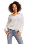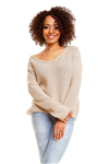 Volný svetr s lodičkovým výstřihem a žebrováním M882 FIGL