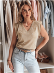 Moderní dámský svetr bez rukávů, který skvěle poslouží jako základ pro mnoho stylů. Jemný materiál obepíná siluetu, zatímco pružný lem zajišťuje dokonalé padnutí. Jedna velikost padne všem od XS po L. Klasický výstřih do V dodává kousku jemnou eleganci, ideální pro ležérní i elegantní outfity.