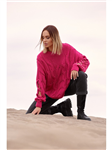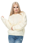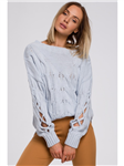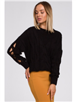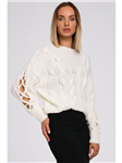Chlupatý svetr pletený s ažurovými vzory 30059