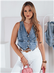 Džínový top moderního střihu, který dokonale zvýrazní siluetu. Vypasovaný střih a výrazné detaily dodávají styl a kvalitní materiál zajišťuje pohodlí. Skvělá volba pro ležérní styling s nádechem elegance, skvěle se hodí k bílým kalhotám a teniskám.