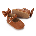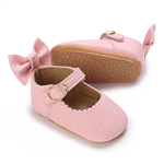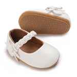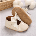 Dívčí kožené balerínky s mašlí, protiskluzová podrážka