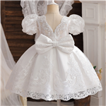 Dívčí krajkové šaty s velkou mašlí pro svatby a první přijímání