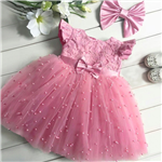 Dívčí tylové šaty s flitry a mašlí pro svatby a slavnostní příležitosti