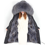 Dlouhá parka, podšívka králík + liška s kožešinou z mývala