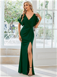 dlouhé, lesklé šaty s výstřihem a krátkými rukávy 635-1 MELANIA