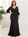 Večerní flitrové šaty s výstřihem do V a dlouhými rukávy