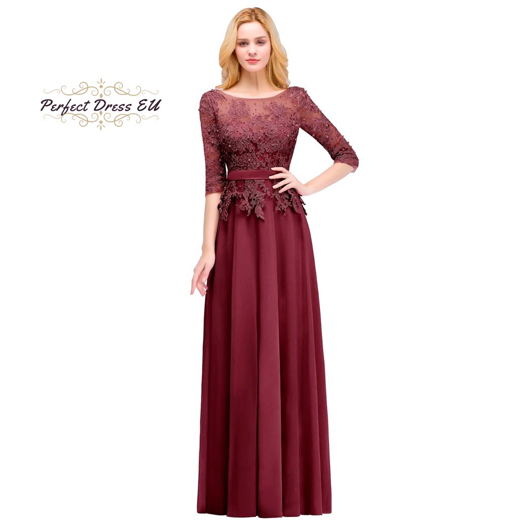 Dlouhé šifonové šaty s krajkovými aplikacemi a perlami pro slavnostní večery