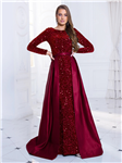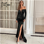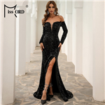 Justine - dlouhé šaty s výstřihem, rozparkem na noze a zavazováním na zádech. Vyrobeno ze vzdušného materiálu s třpytkami. Zapínání vzadu na skrytý zip. Polský výrobek. Značka Numoco.