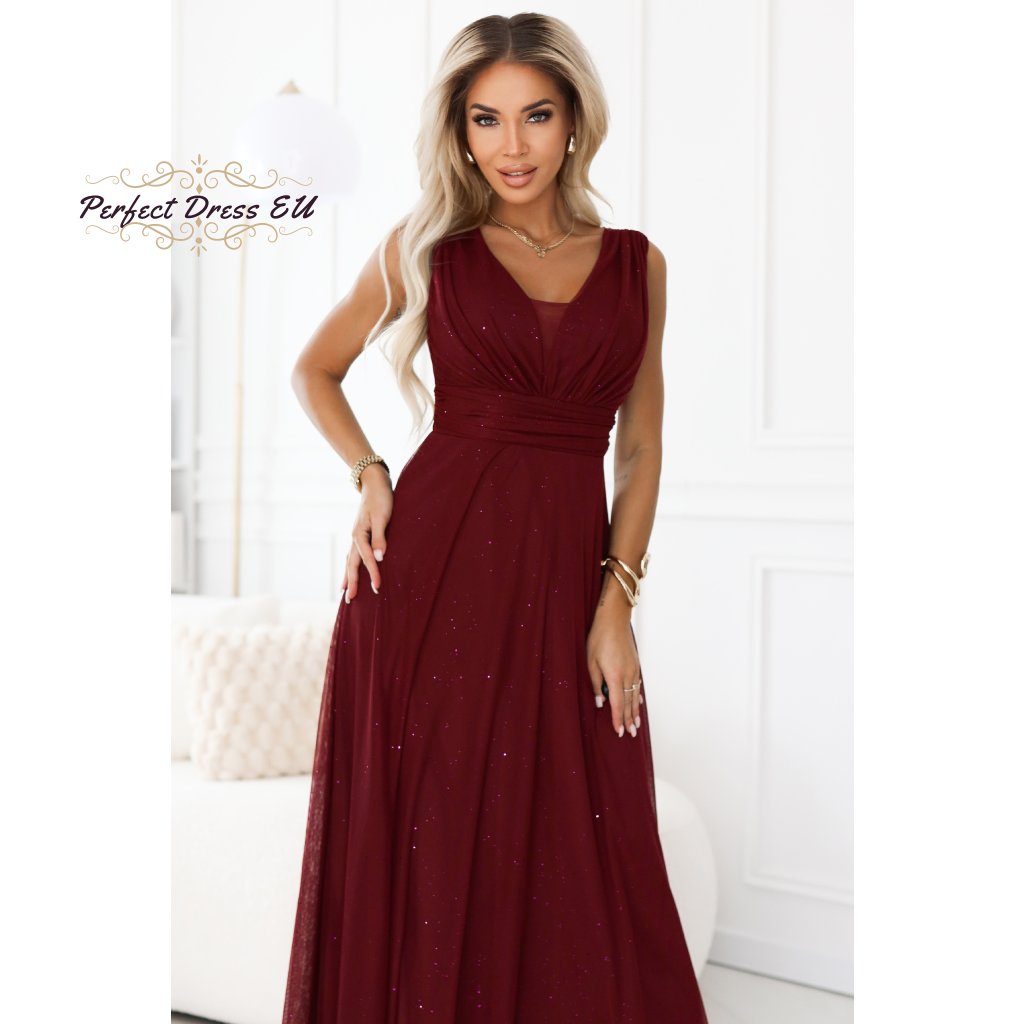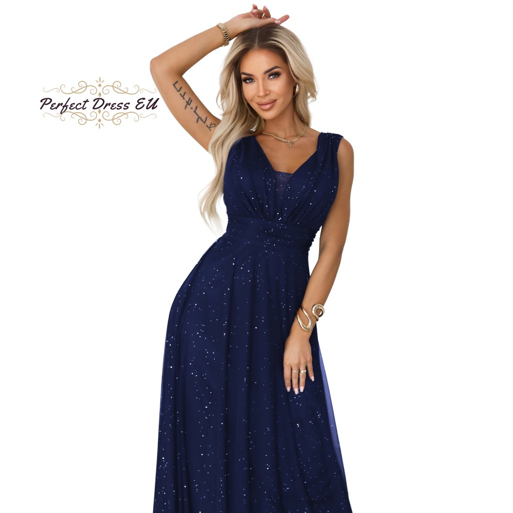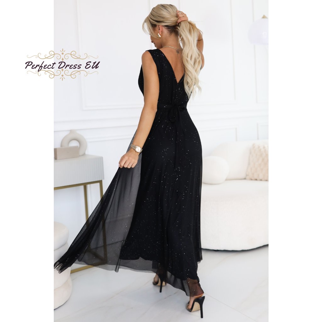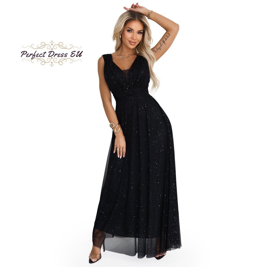 Dlouhé večerní šaty s brokátem a hlubokým výstřihem 637-1