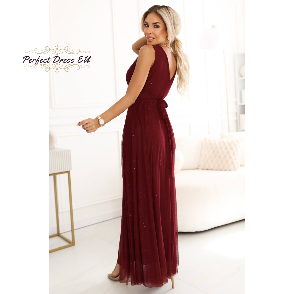 Elegantní dlouhé večerní šaty Numoco Basic zaujmou svým klasickým střihem a decentním leskem. Měkká, pružná látka krásně splývá, zatímco zavinovací výstřih do V a široký pas zdůrazňují pas a zajišťují pohodlí po celý večer. Jsou to nadčasová volba pro svatbu, maturitní ples, silvestrovskou párty nebo rodinnou oslavu.