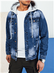 Pánská zimní džínová bunda s kožíškem a kapsami