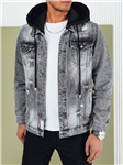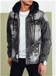 Pánská džínová bunda s bavlněnými rukávy a kapucí