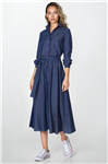 Džínové midi šaty ve stylu košile denim šaty s knoflíky