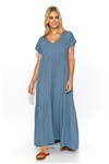 Midi džínové šaty se zapínáním na knoflíky, dlouhé rukávy s manžetami, elegantní límec, kapsy na hrudi a rozšířená, jemně zahalená sukně. Odnímatelný vázací pásek v pase.| Tabulka v CM | Prsa | Pas | Boky | Celková délka | Šířka ramene |