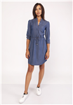 Šaty s jemným stojatým límcem a vázáním v pase, vyrobené z módní džínové látky, dokonale zapadají do trendů letošního podzimu.