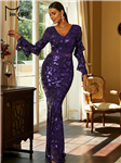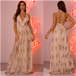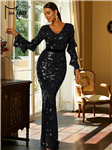 Flitrové dlouhé šaty s výstřihem a volánkovými rukávy