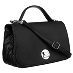 - Módní design |. Taška uzavíraná klopou s kovovou, otočnou sponou s logem firmy a zipem. Veškeré kování v brašně je krásně stříbrné, což vytváří skvělý kontrast k černé barvě eko kůže