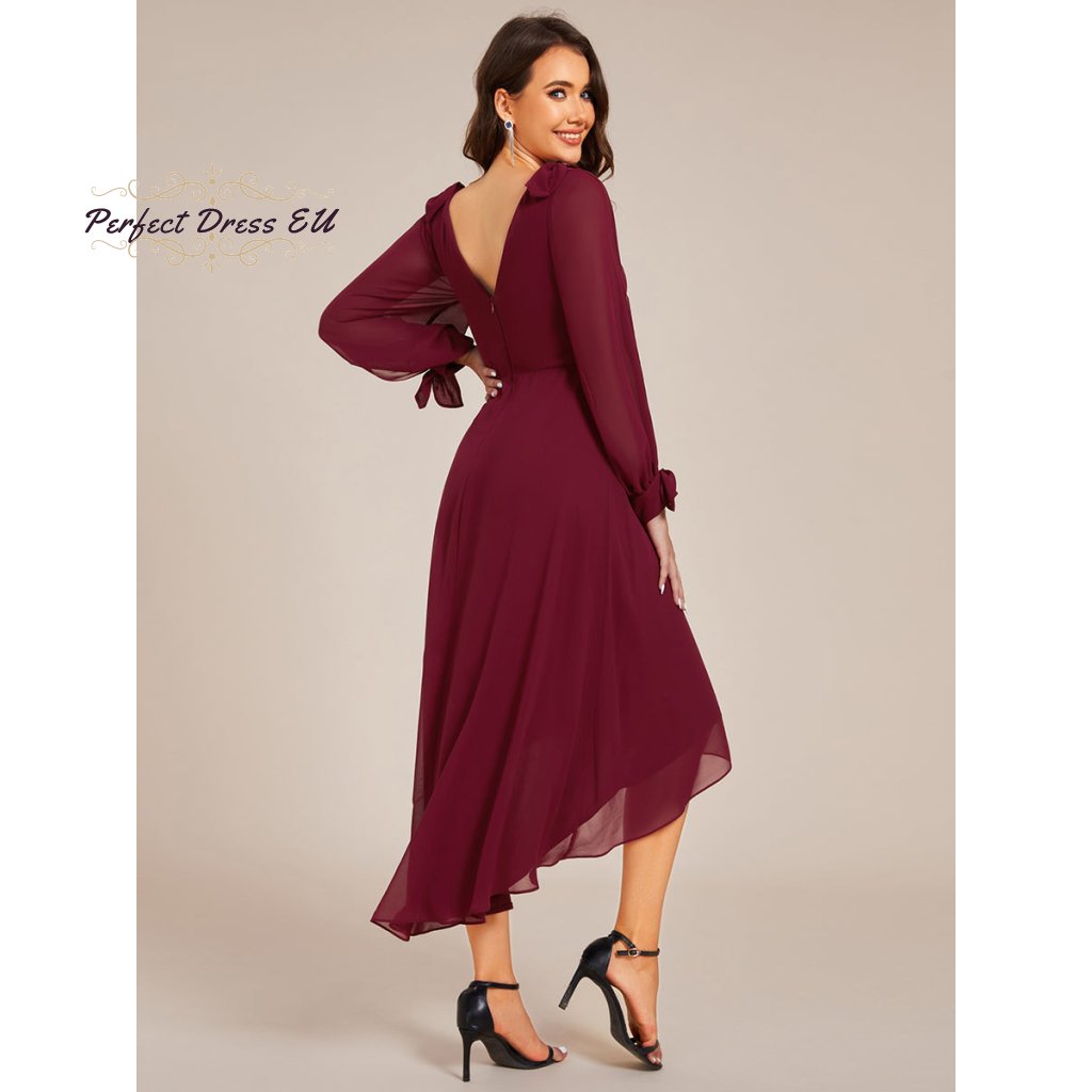 Upoutejte oko těmito úžasnými šifonovými šaty inspirovanými motýly. Její Dlouhé rukávy elegantně splývají, zatímco silueta midi Délka A-line lichotí každé postavě. Asymetrický lem dodává nádech rozmaru a při pohybu elegantně tančí. Tyto lehké a vzdušné šaty šeptají sofistikovanost, takže jsou perfektní volbou pro zvláštní příležitost nebo večer ve městě. Přijměte svou vnitřní krásu a udělejte nezapomenutelný vstup.