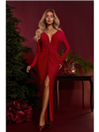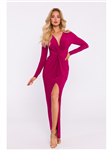 Večerní šaty, dvojitý hluboký výstřih do V a volánové rukávy