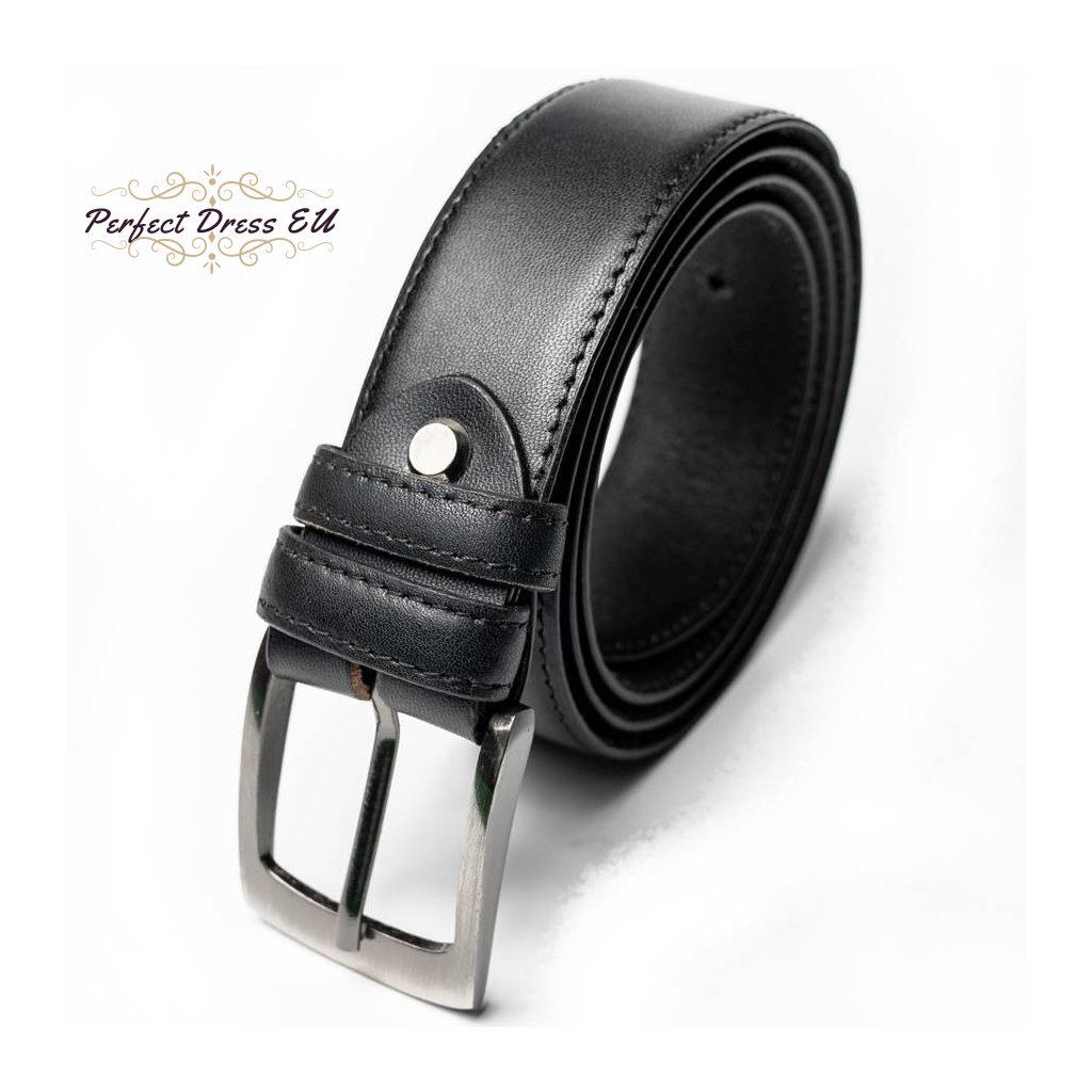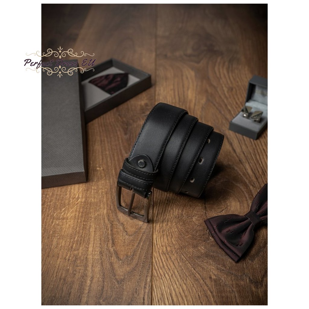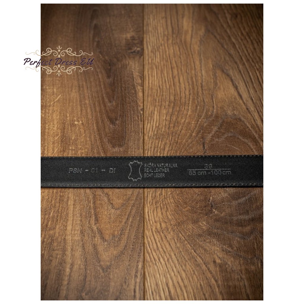 Moderní, originální pásek vyroben z kvalitní černé přírodní kůže s klasickou, jednoduchou kovovou sponou. Zajímavý styl zpestří jakýkoliv styling.