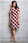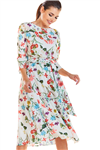 květévané a kostkované midi šaty s dlouhým rukávem M147