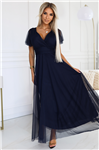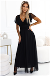 Tylové dlouhé šaty plus size s flitry a krátkým rukávem