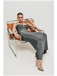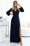 Večerní třpytivé šaty s výstřihem a rozparkem na noze