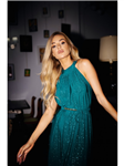 Flitrové večerní šaty s krátkými volánovými rukávy