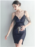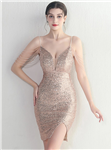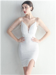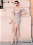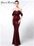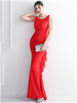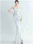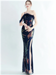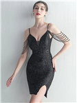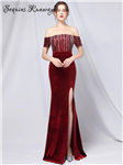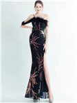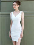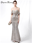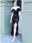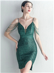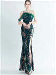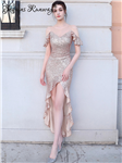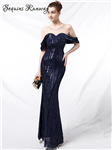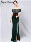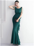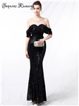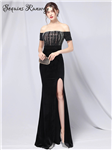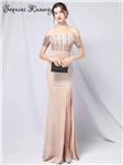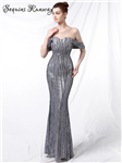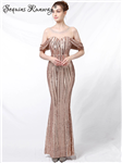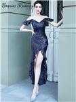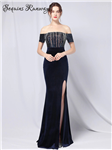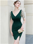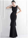 Večerní šaty s krátkým rukávem, rybím ocasem a výstřihem do V