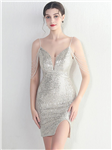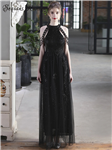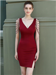 Večerní šaty áčkového střihu s hlubokým výstřihem do V