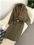 Fleece dámský kabát s páskem s kapsami M708 MOE