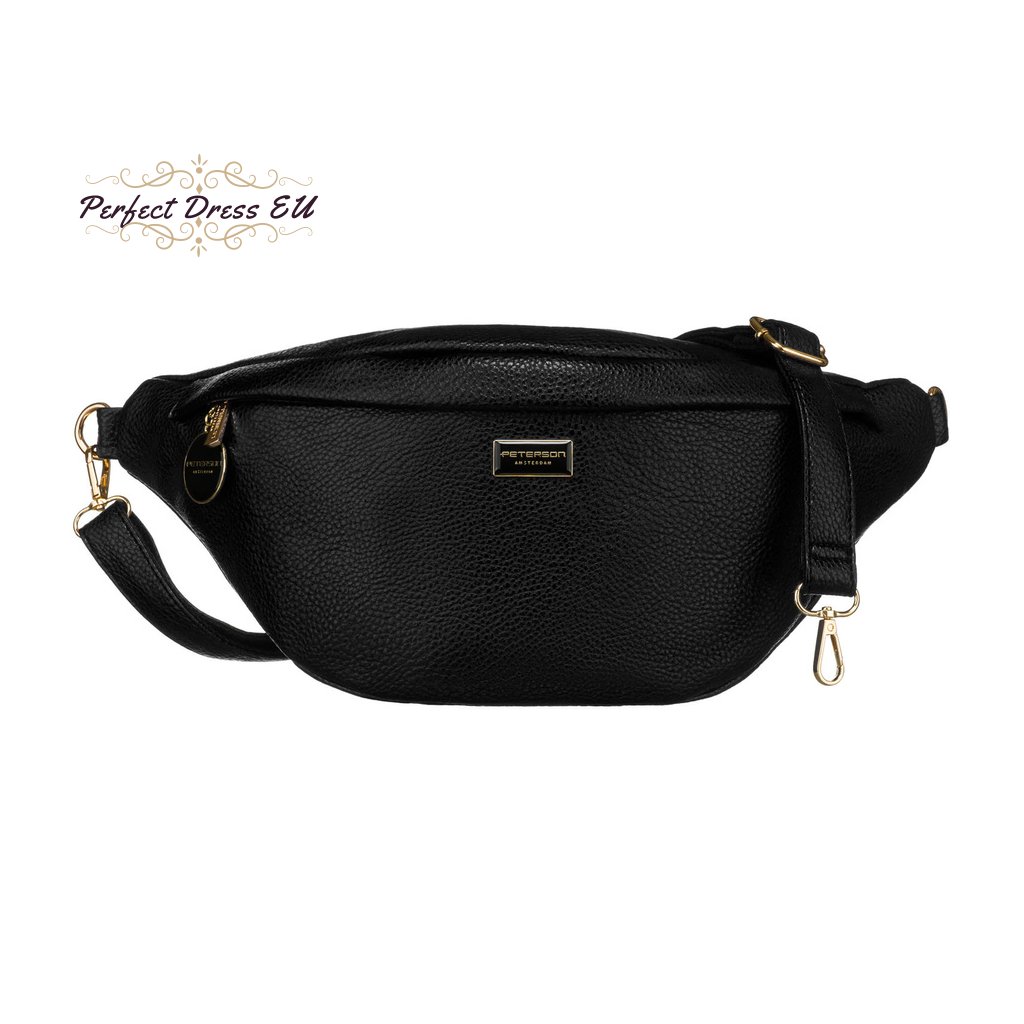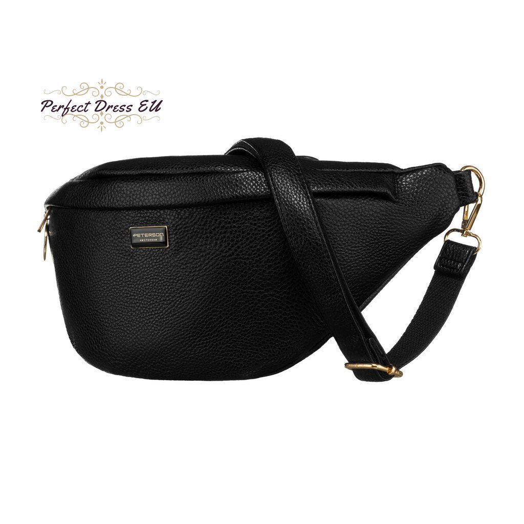 Klasická černá dámská ledvinka, kabelka přes rameno nebo crossbody, ekokůže, Peterson