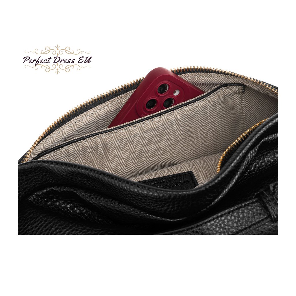 I když může vypadat decentně, tato taška pojme více, než byste čekali. Hlavní přihrádka je prostorná a vejde se do ní telefon, peněženka, klíče, kosmetika a další nezbytnosti . Uvnitř navíc najdete dvě kapsy – ideální pro rychlý přístup k věcem.