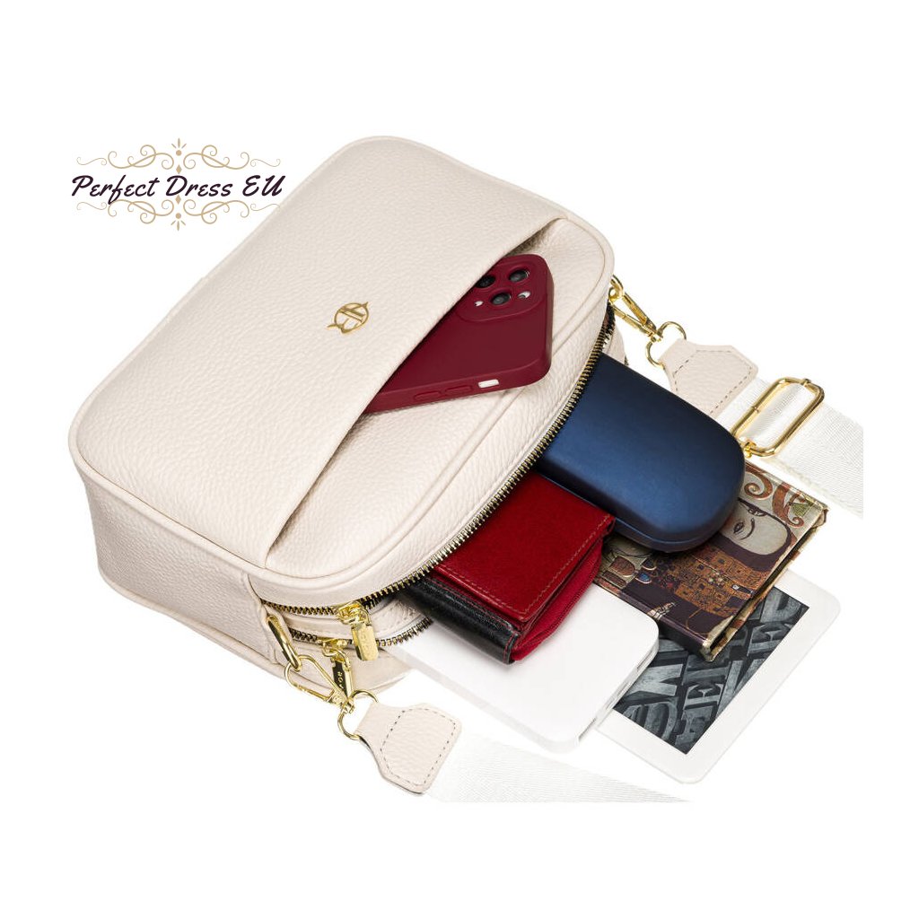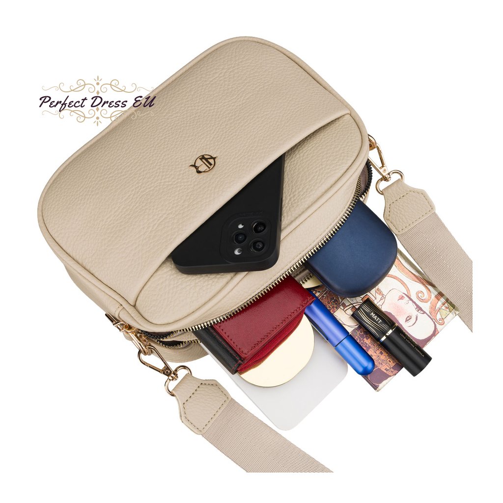 Pohodlné nošení zajišťuje nastavitelný široký popruh s maximální délkou 140 cm - lze jej nosit přes rameno nebo crossbody, délku si upravíte podle svých preferencí.