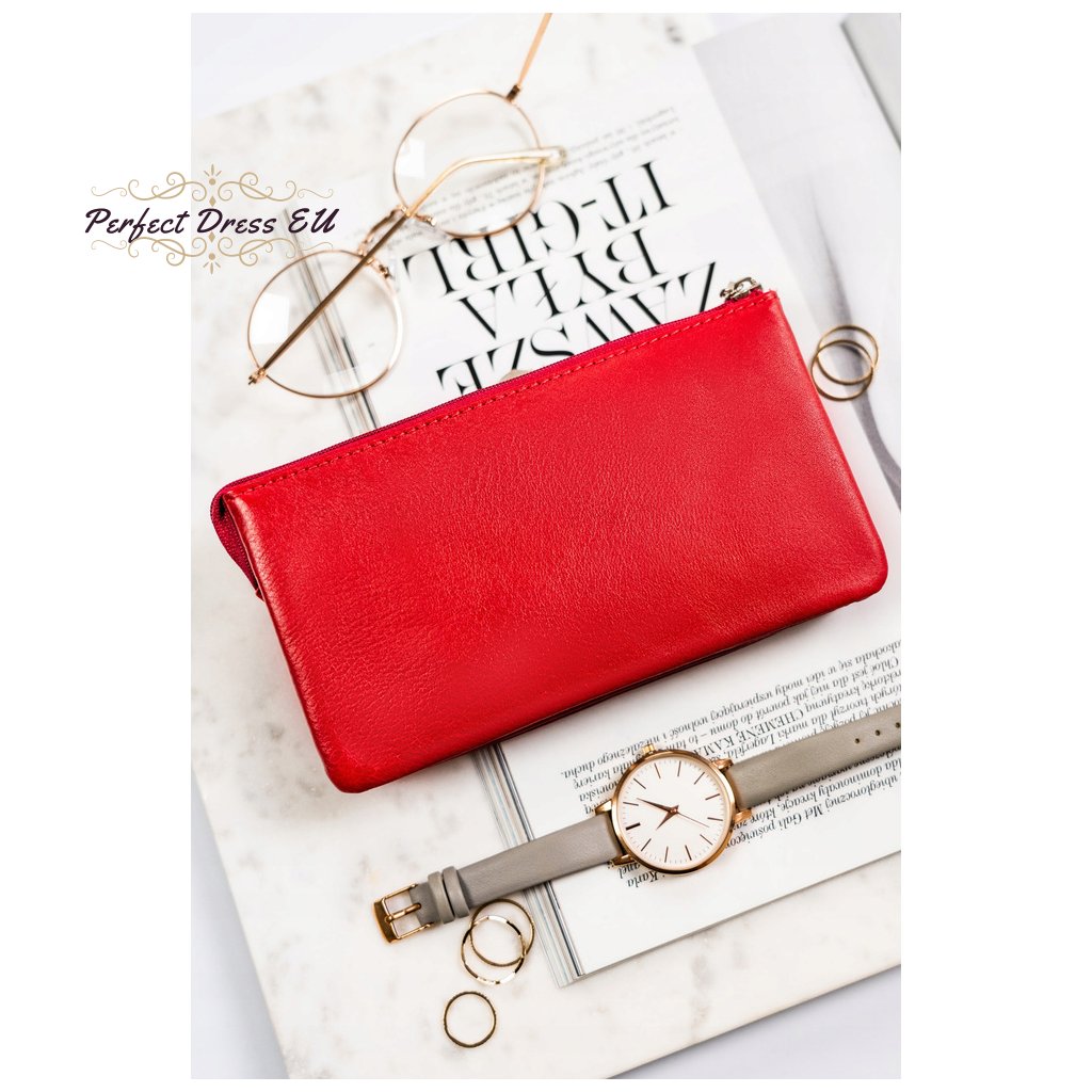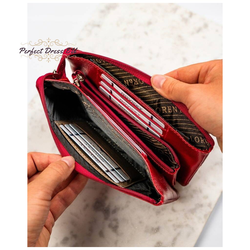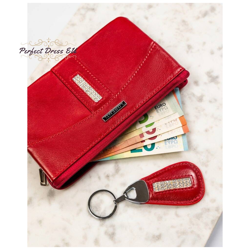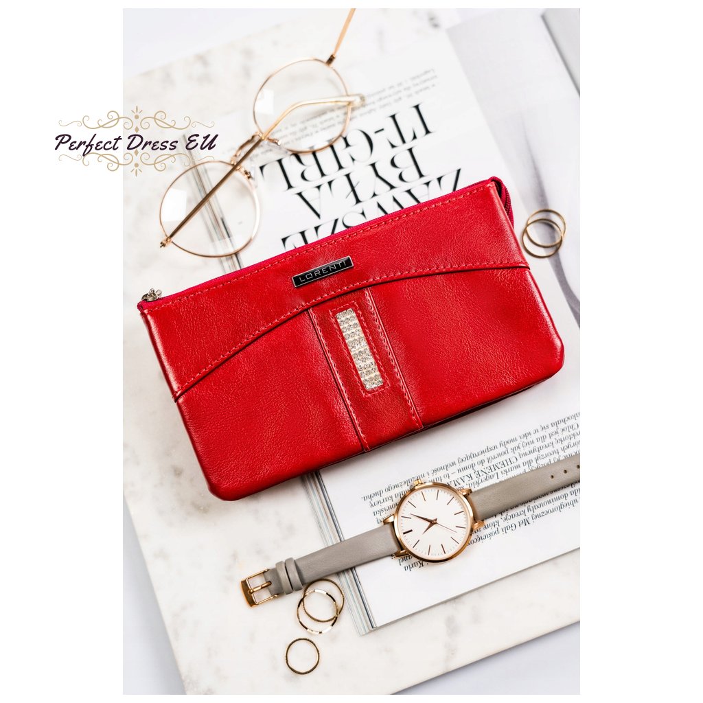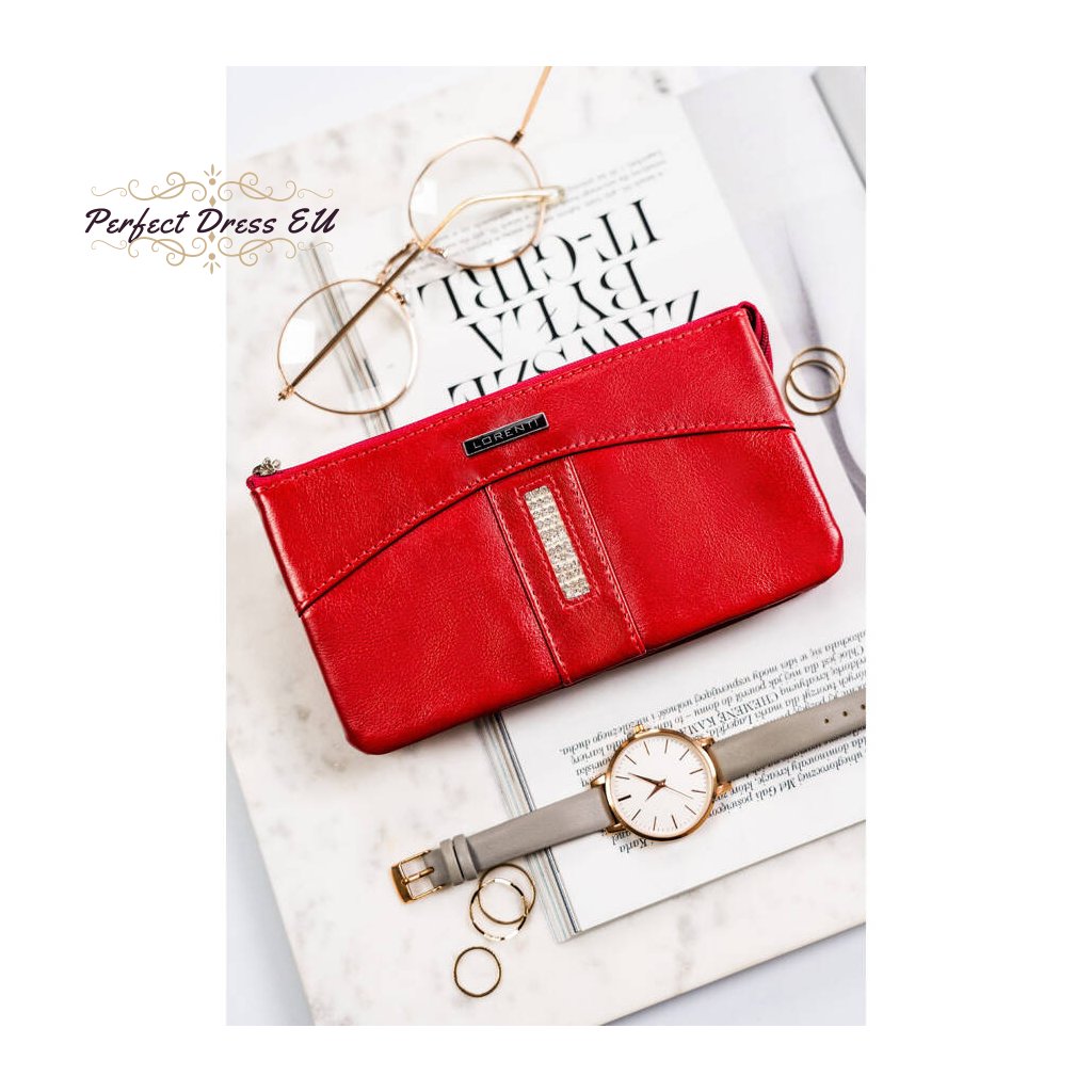 Kožená, červená dámská peněženka s ozdobnými krystaly na přední straně - Lorenti