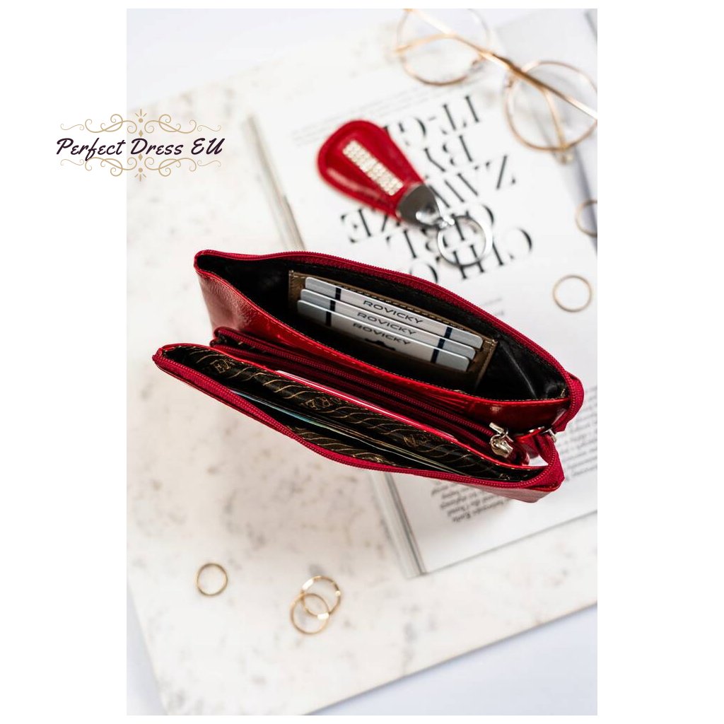 - Originální design | Červená peněženka s ozdobnými krystaly a klíčenkou;