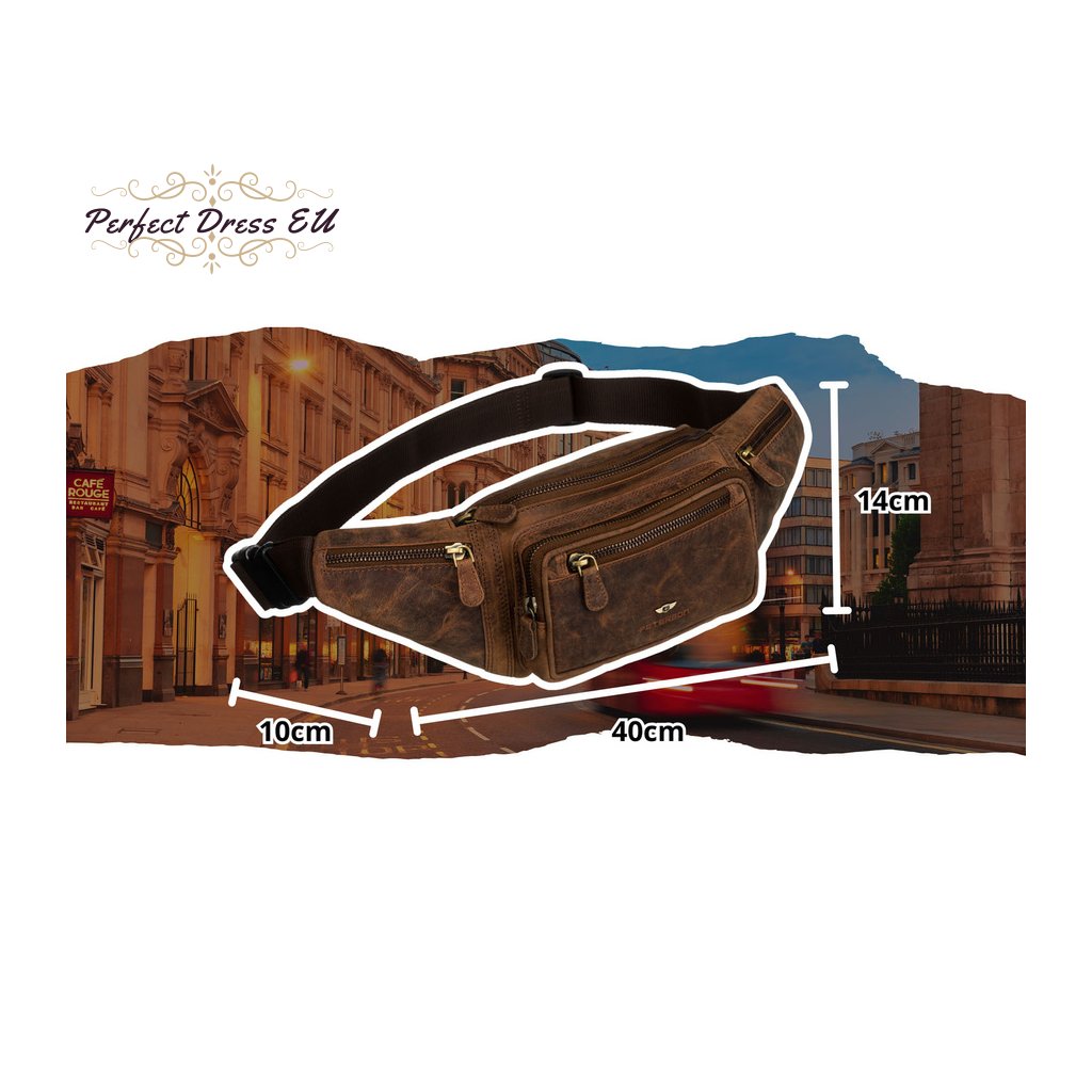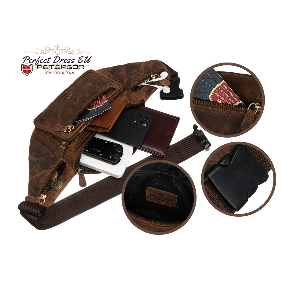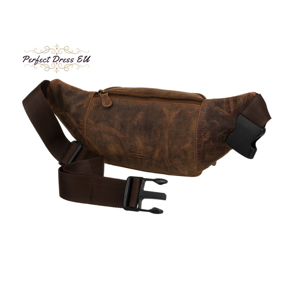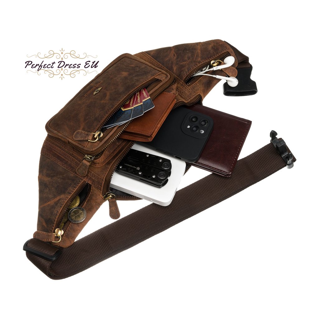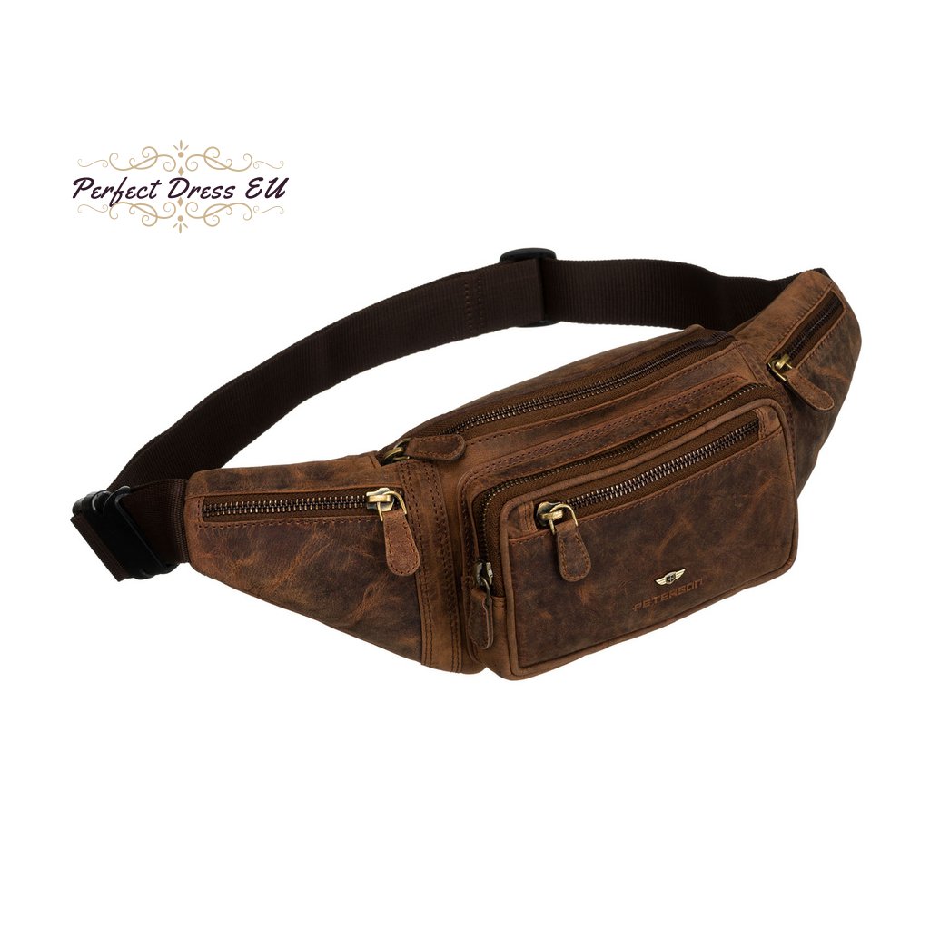 Kožená, prostorná pánská taška ledvinka