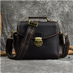Taška má nastavitelný popruh potažený kůží, zapínání na kovové přezky.
