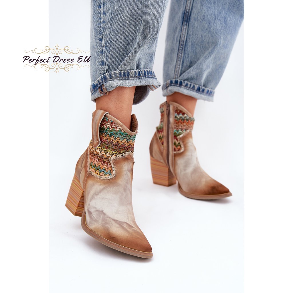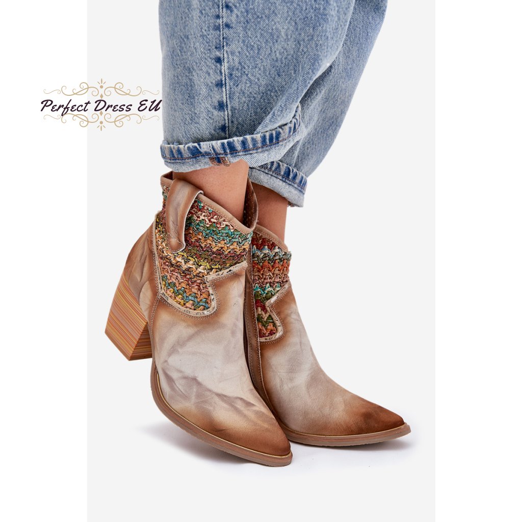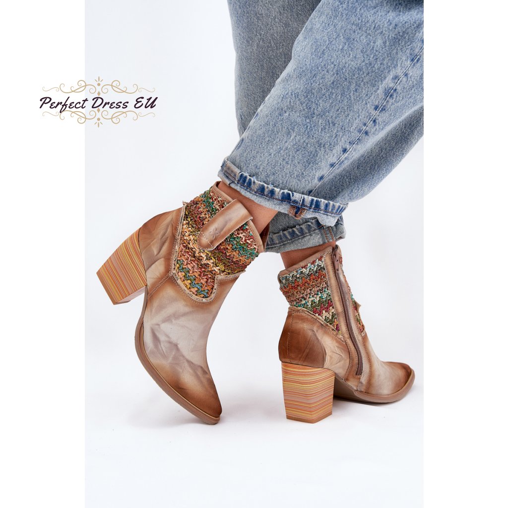 Kožené Boty Kovbojky Na Podpatku S Dekorativním Pletením Maciejka 06810-29 Multikolor