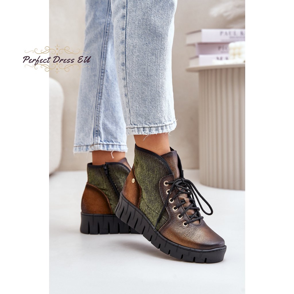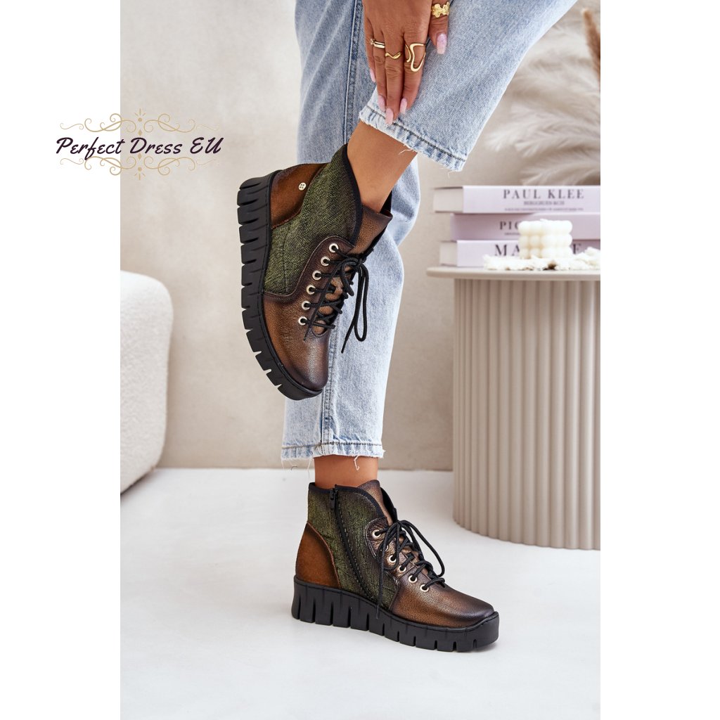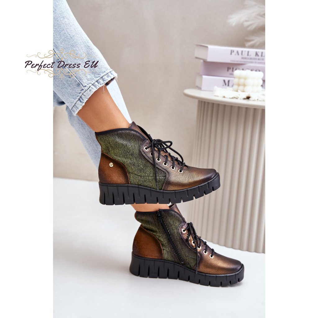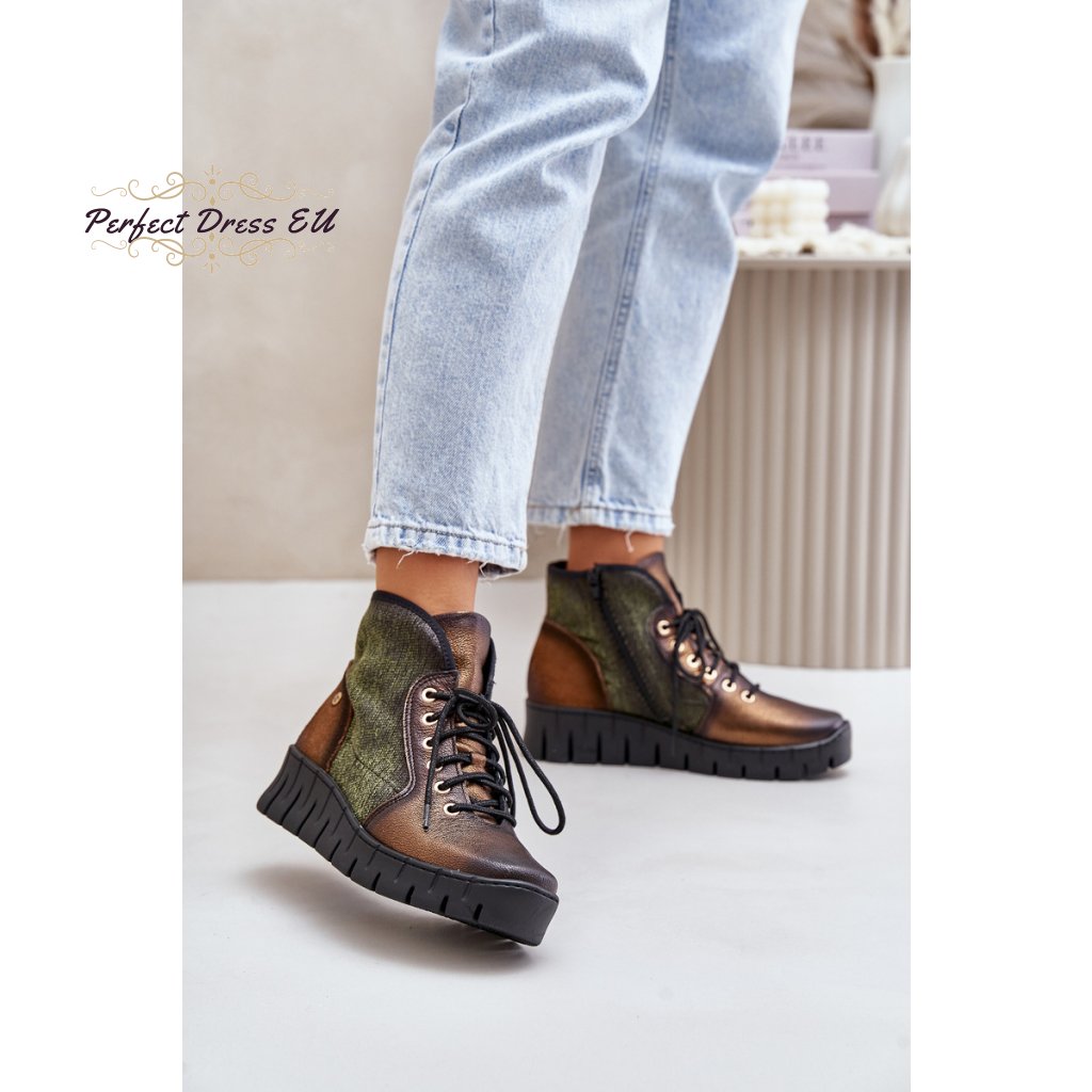 Boty značky Maciejka jsou stylovou nabídkou pro podzimní stylizace. Tento model je umístěn na platformě a klínu, což zajišťuje pohodlí a módní vzhled. Díky praktickému zapínání na zip a šněrování se boty snadno obouvají a dokonale se přizpůsobí noze. Jsou vyrobeny z kombinace přírodní kůže a textilu. Určitě byste je měly mít! Při výběru velikosti se řiďte tabulkou velikostí.