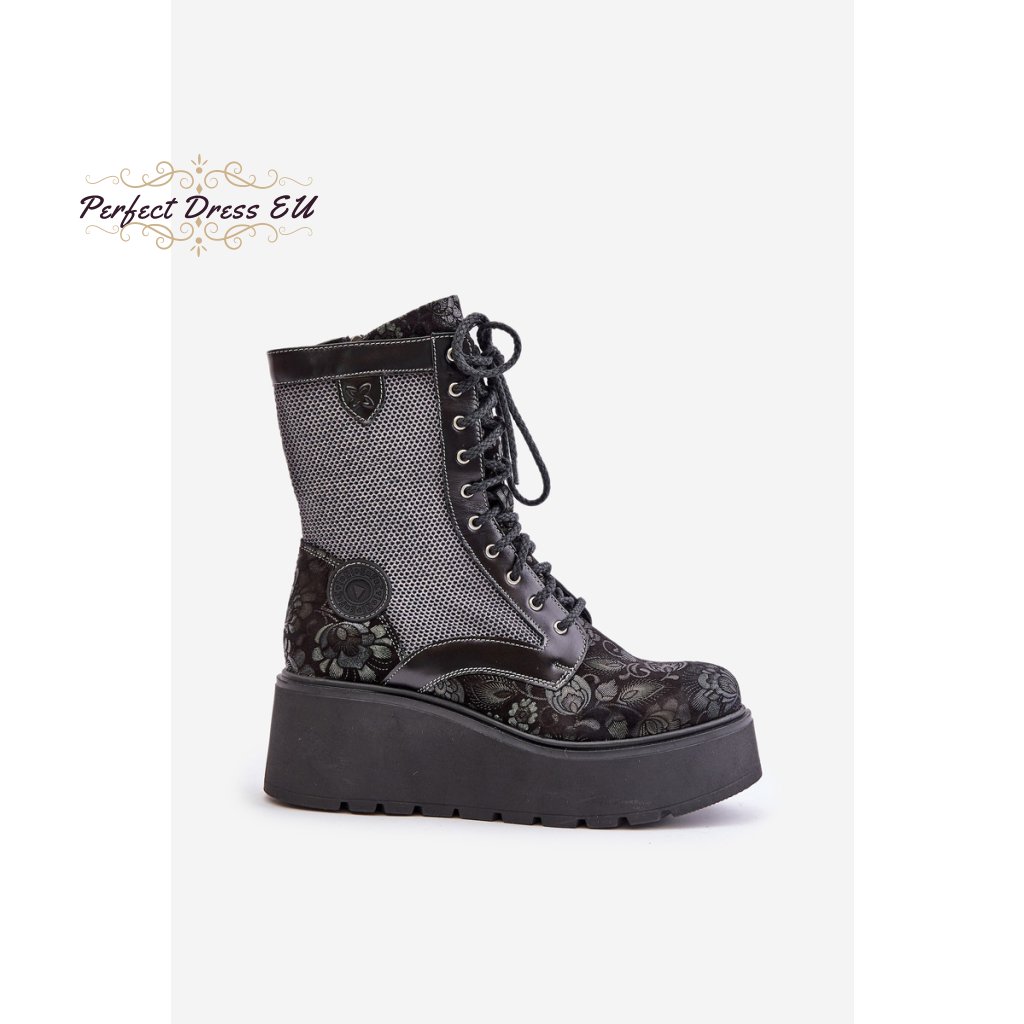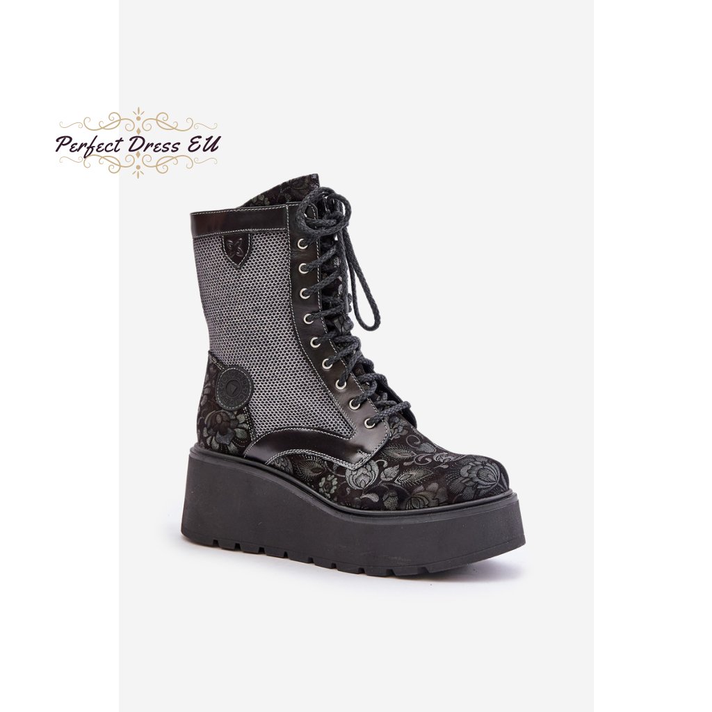 Kožené boty na platformě a klínu s vzorovaným svrškem Maciejka 06720-01