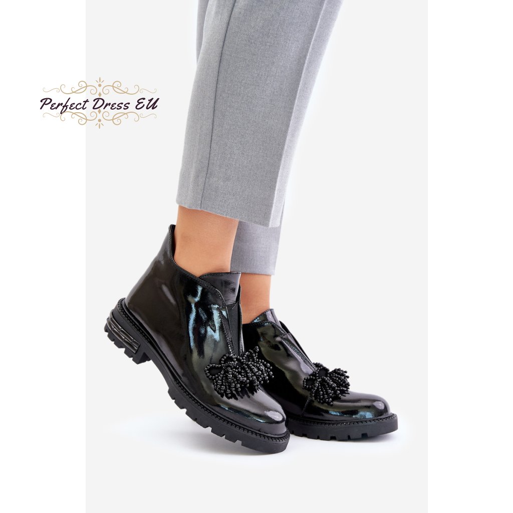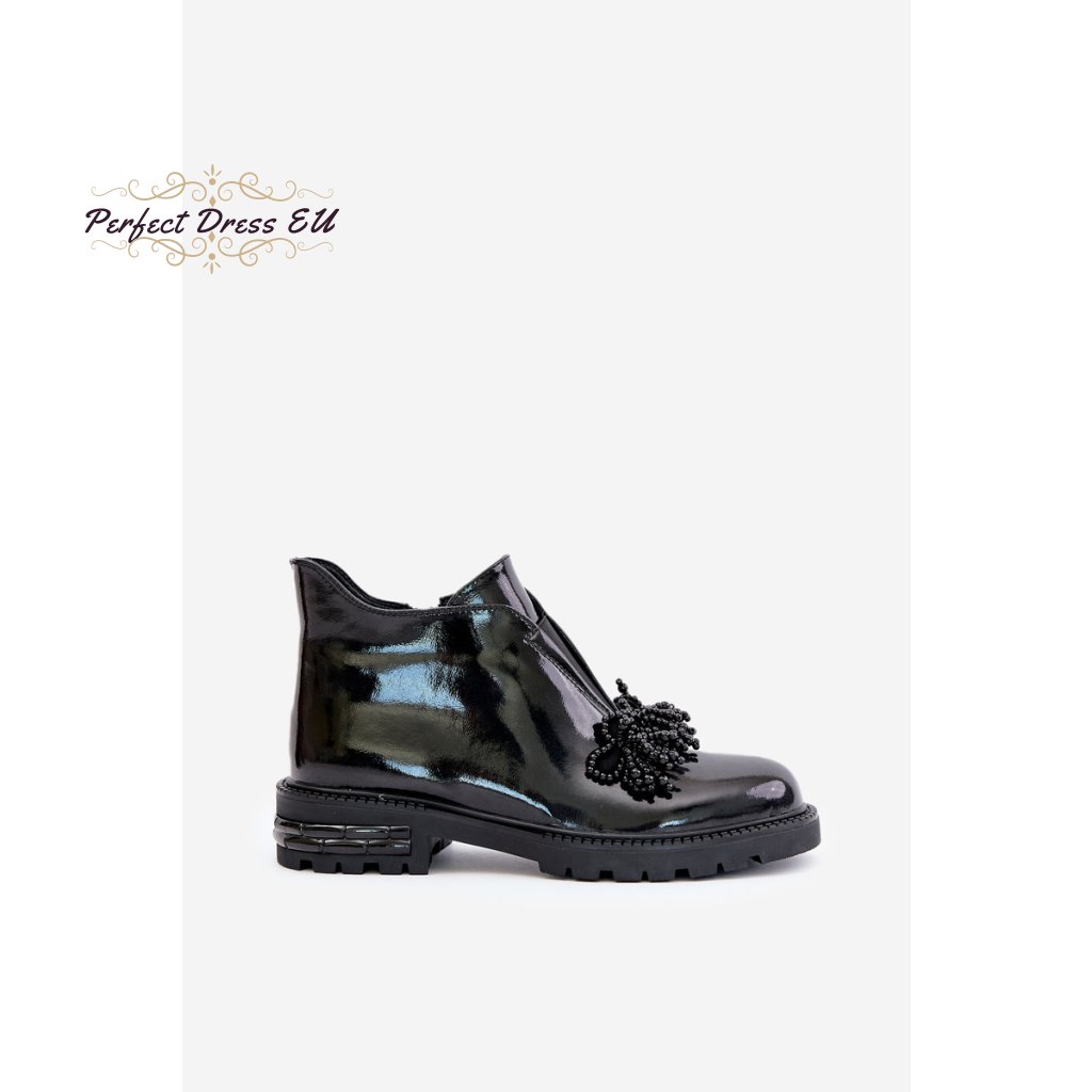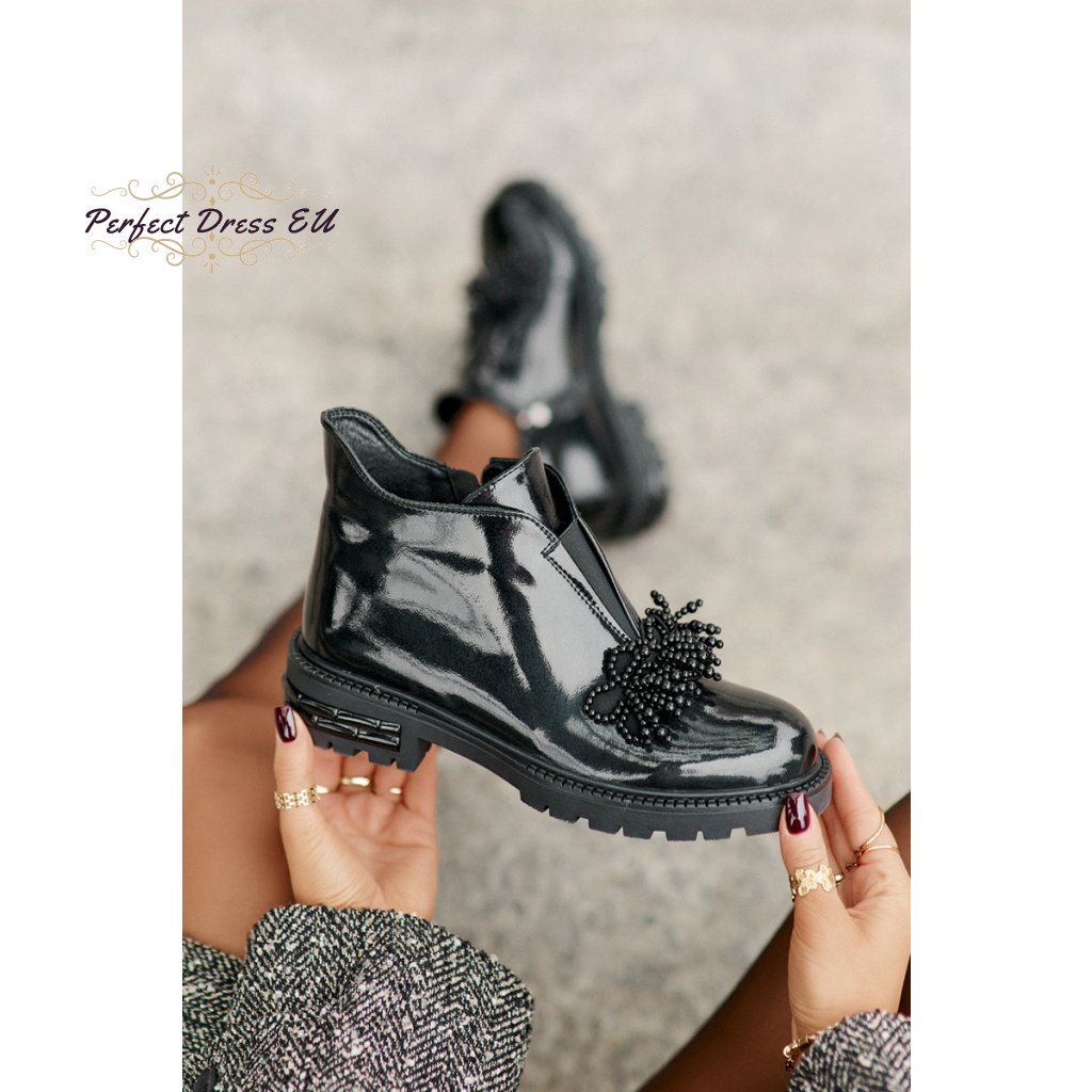 Kožené Lakované Botky S Dekorací Zateplené D&A LZ42-036