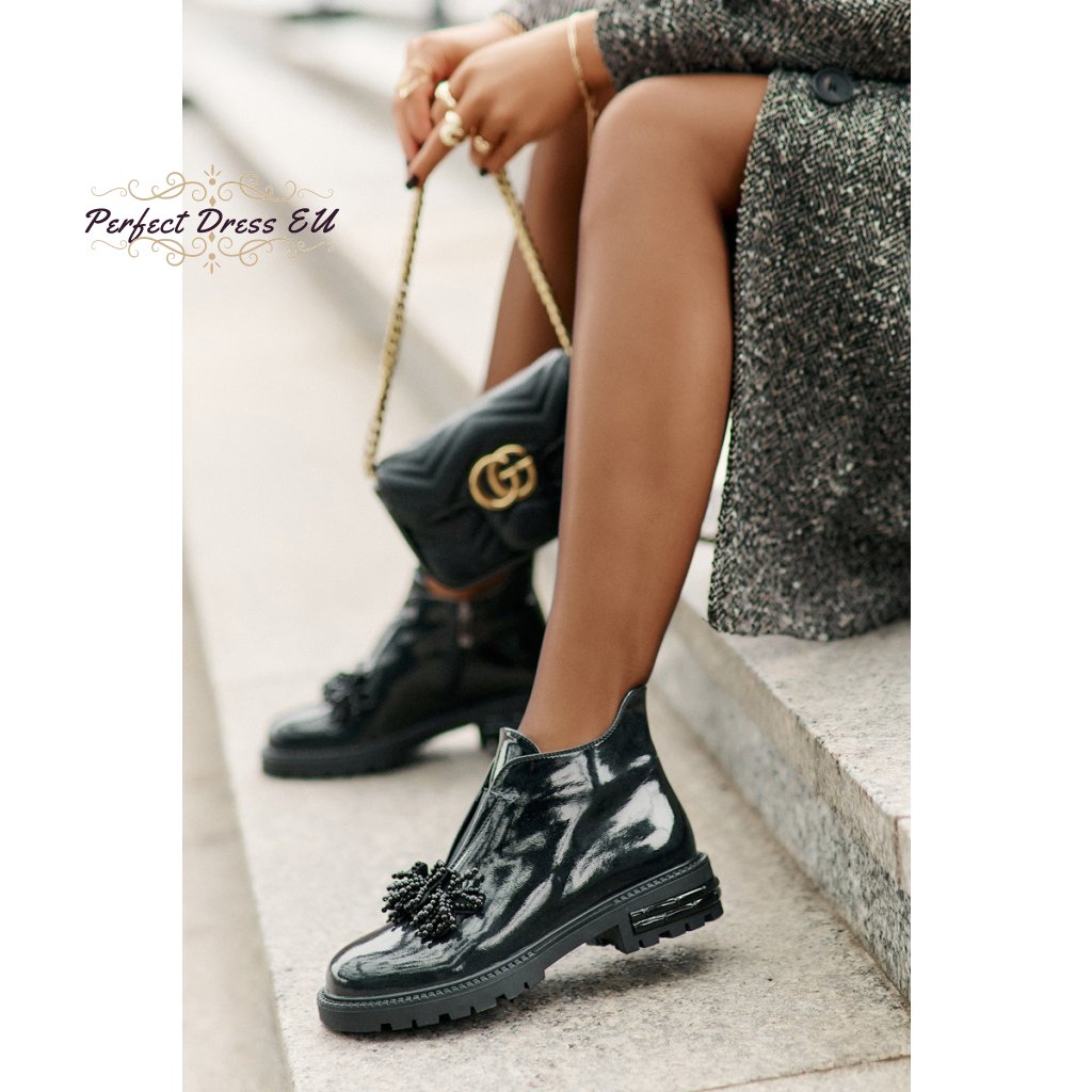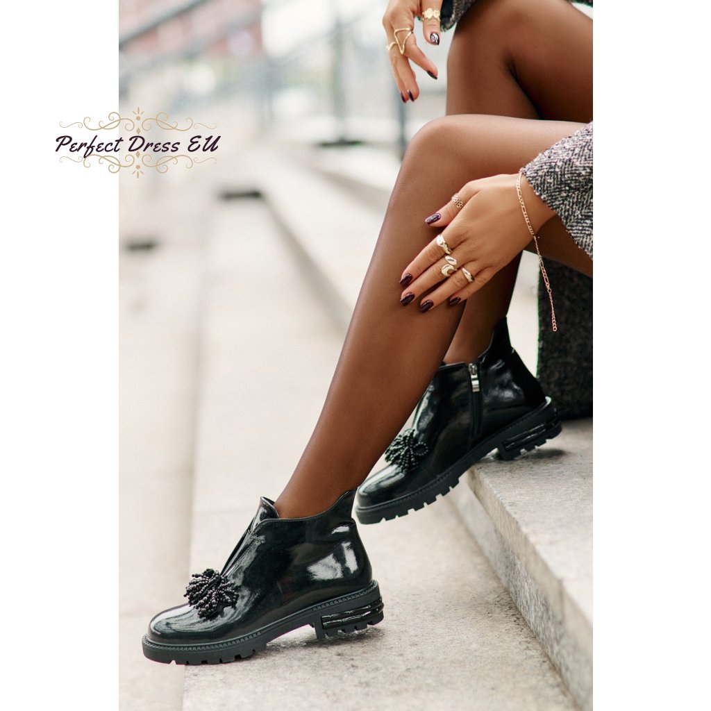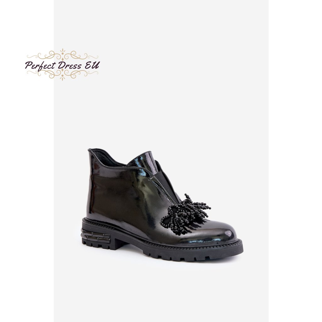 Kožené Lakované Botky S Dekorací Zateplené D&A LZ42-036