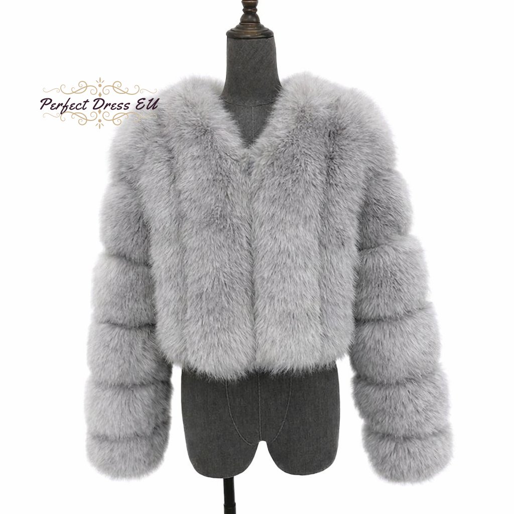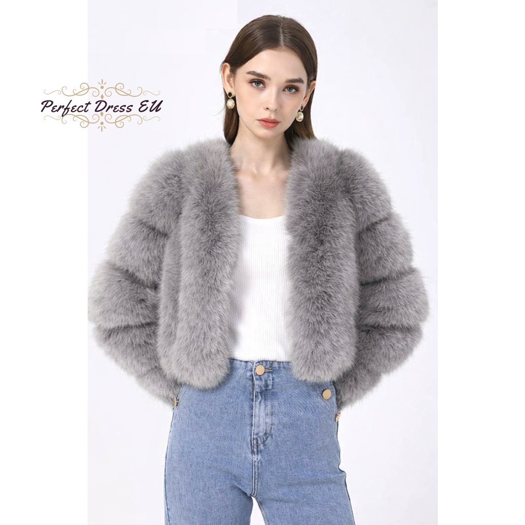 krátká kožešinová bunda s objemnými rukávy - Šedá EU S