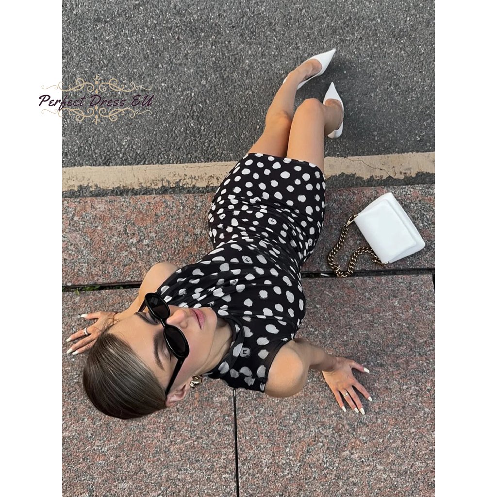 Krátké síťované šaty s puntíky a přiléhavým střihem