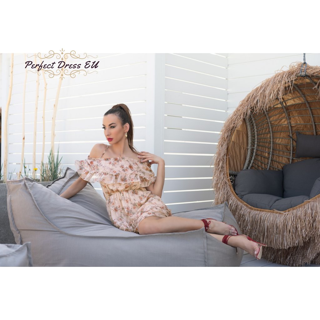 292-5 MARINA zwiewna sukienka z dekoltem - PUDROWY RÓŻ