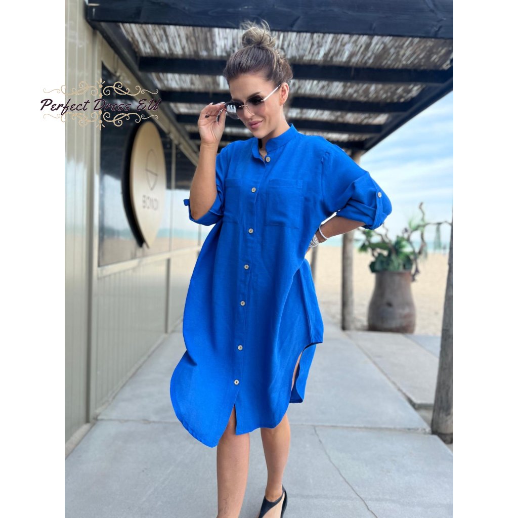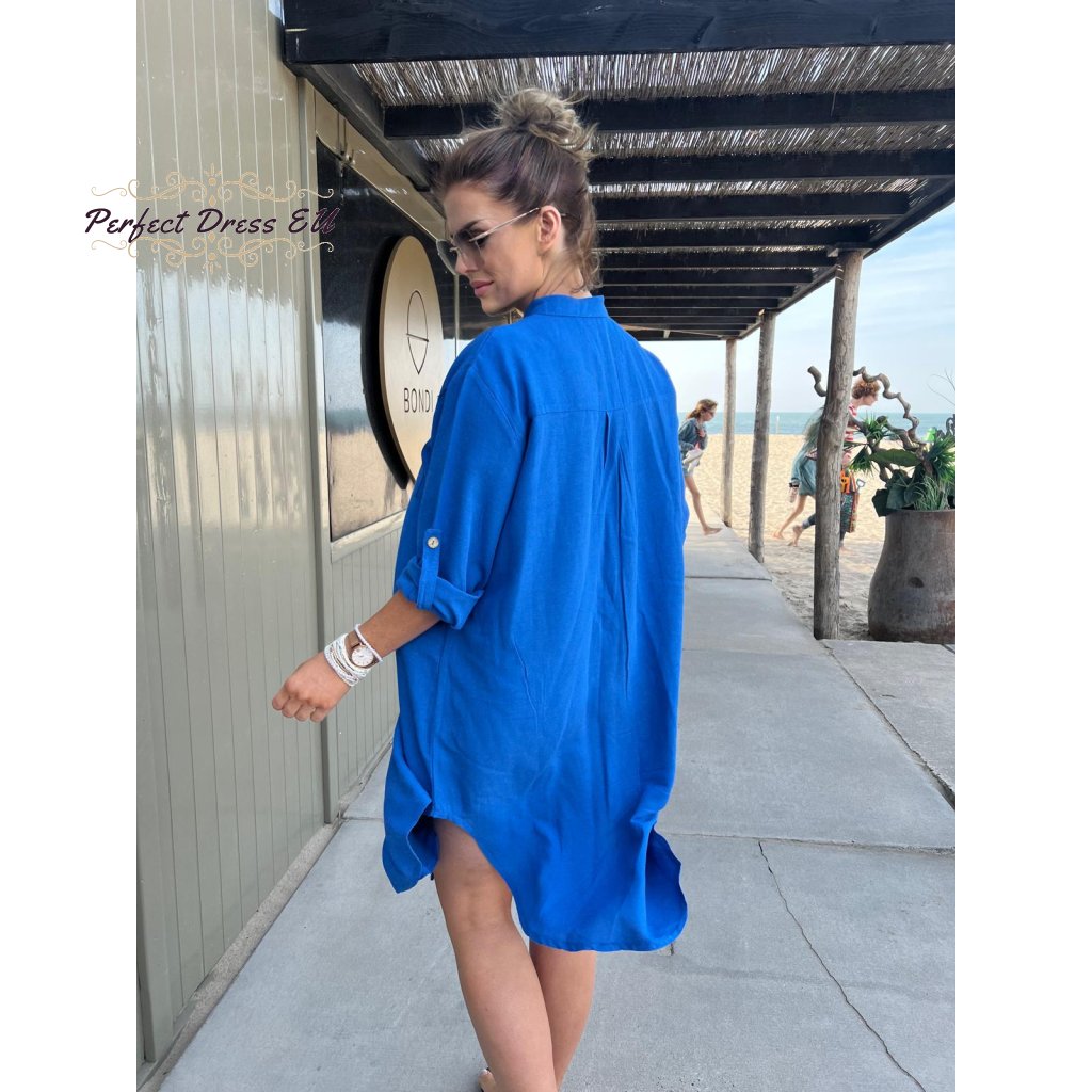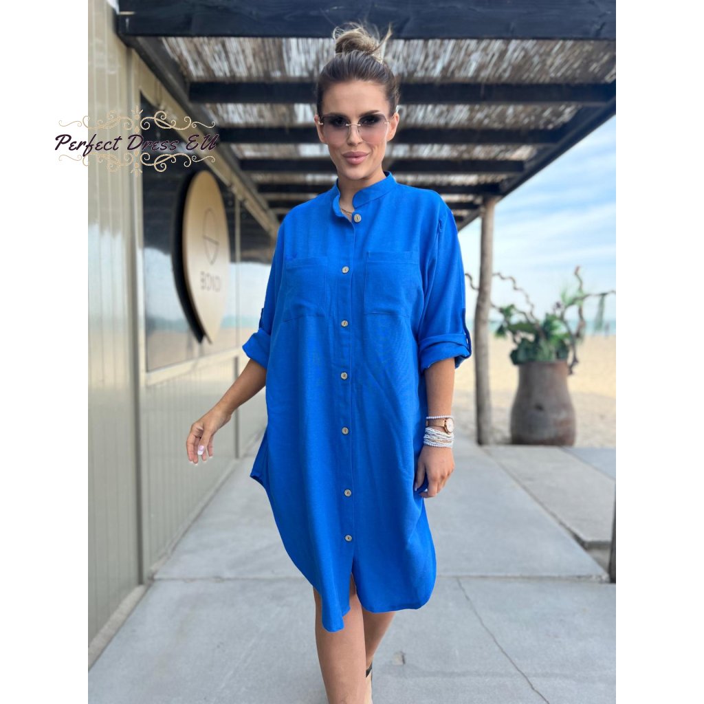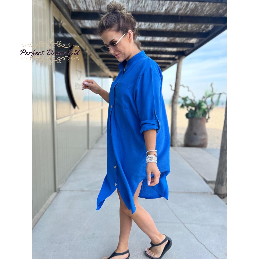 Dámské šaty Mini délka Styl košile hluboký výstřih Ideální pro každodenní styling Složení; 50 % bavlna, 25 % len, 25 % viskózaDoplňkové parametry