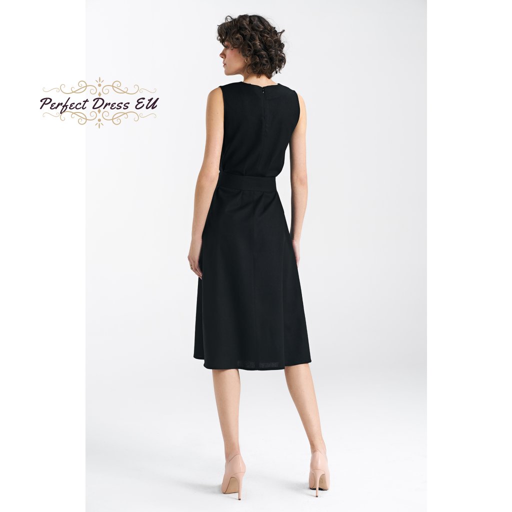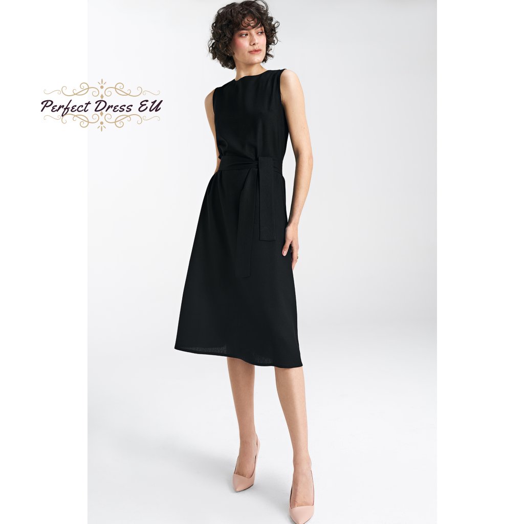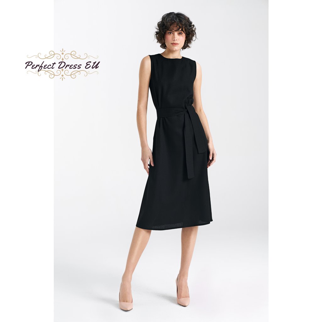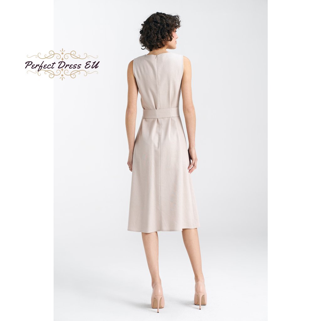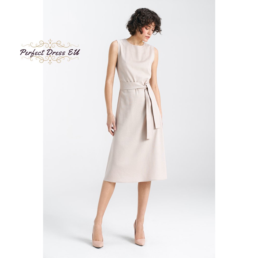 Pravidelný střih. Materiál s viskózou, lnem a bavlnou. Kulatý výstřih. Bez rukávů. Zapínání vzadu na skrytý zip. Midi délka. Včetně opasku. Bez podšívky. Složení: 49% viskóza, 28% len, 23% bavlna Modelka na fotografii je vysoká 176 cm a má na sobě velikost 36.Doplňkové parametry
