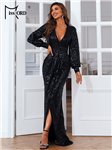Dlouhé třpytivé šaty flitrované s krátkými rukávy