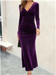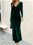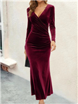 Šifonové šaty na svatbu s výstřihem do V a dlouhým rukávem